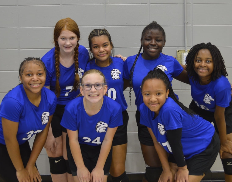 The Varsity Volleyball team is coached by Ms. Jodie Monosky.